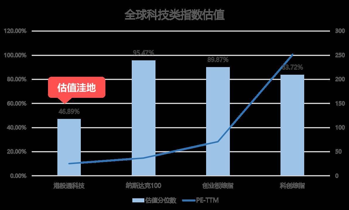 结论也是显然的:港股通科技指数的估值,无论绝对值还是历史分位,都显著低于美股、A股科技,性价比非常突出。全球范围内,像港股科技这样还没有回到历史高点的科技类资产,已经没多少了。
